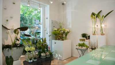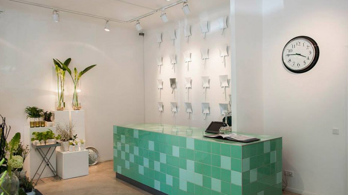 Im Jahr 2011 im schönen Prenzlauer Berg eröffnet, hob sich der Concept Store durch sein sehr cleanes und außergewöhnliches Interieur Konzept komplett ab – so kannte man Blumenläden bis dato noch nicht. Dunkle anthrazitfarbene Wände brachten die verschiedenen jahreszeitlichen Blüten nur so zum strahlen und nahmen die Kunden mit in eine andere Welt. Der Tresen mit Fliesen in einem Mintton setzte einen farbigen Akzent in dem sonst sehr schlicht gehaltenen Raum. Das Sortiment frischer, saisonaler Pflanzen und Blüten wurde von ausgewählten Design-Objekten wie Lampen, Kissen, Kerzen und Kleinmöbel stilvoll ergänzt.