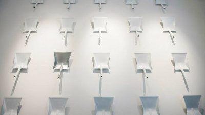 Nur wenige Gehminuten entfernt vom alten Horeis Florist Concept Store wurde im Sommer 2013 der zweite Shop eröffnet. Dieser hob sich komplett ab vom bisherigen Design. Der Laden strahlte in einem frischen Weiß, der Sichtbeton-Boden ließ alles hell und freundlich wirken. Auch hier setzte der Tresen mit seinen Fliesen in Mint einen farbigen Hingucker. Hinter dem Tresen dienten Kehrschaufeln als dekoratives Wandelement.