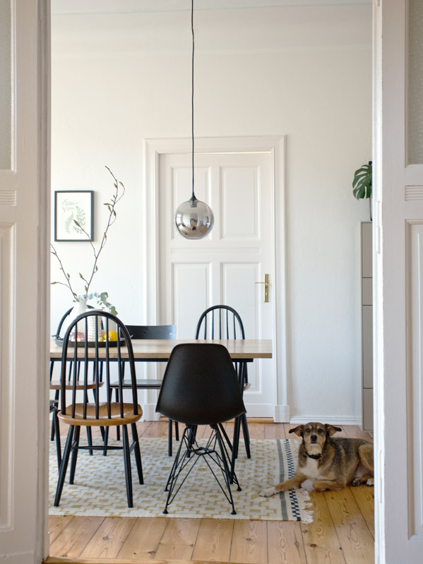 Diese kleine lichtdurchflutete Neubauwohnung in Prenzlauer Berg mit ihrem offenen Design Konzept habe ich im skandinavischen Stil mit zusätzlichen Industrial-Akzenten ausgestattet. Klare Linien und Formen stehen für den modernen Look. Gekalktes Holz von Tisch und Boden sind nordisch-perfekte Begleiter dieses Gestaltungsthemas.