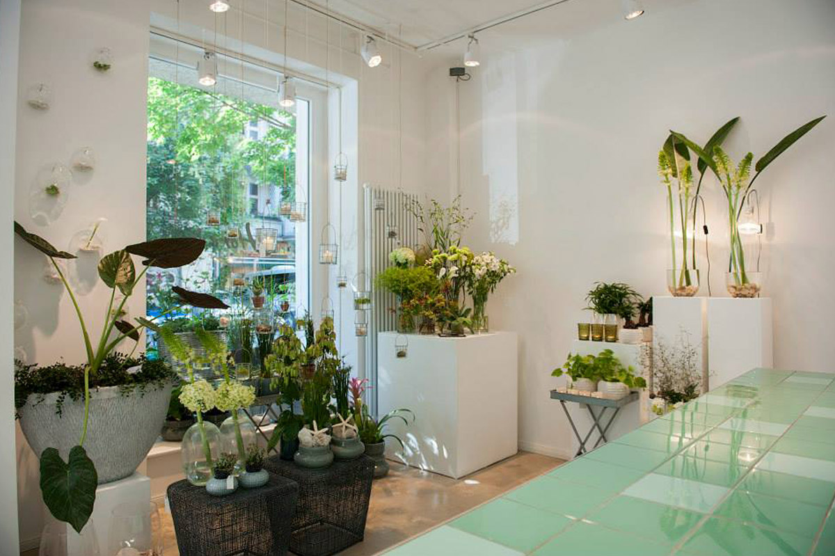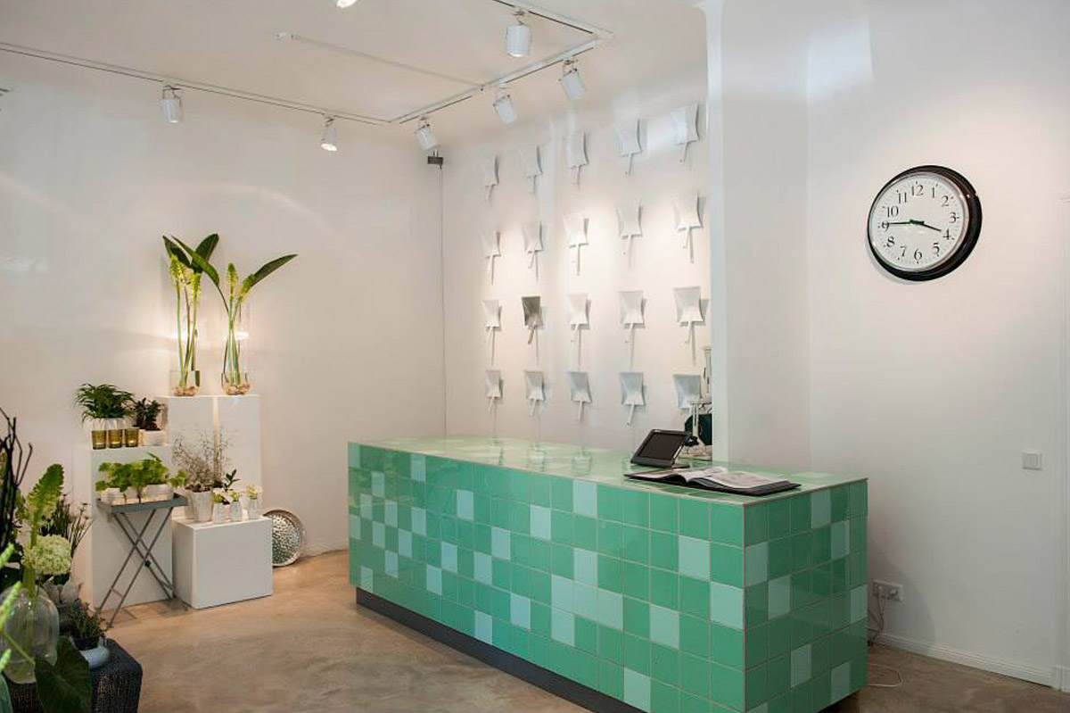 Im Jahr 2011 im schönen Prenzlauer Berg eröffnet, hob sich der Concept Store durch sein sehr cleanes und außergewöhnliches Interieur Konzept komplett ab – so kannte man Blumenläden bis dato noch nicht. Dunkle anthrazitfarbene Wände brachten die verschiedenen jahreszeitlichen Blüten nur so zum strahlen und nahmen die Kunden mit in eine andere Welt. Der Tresen mit Fliesen in einem Mintton setzte einen farbigen Akzent in dem sonst sehr schlicht gehaltenen Raum. Das Sortiment frischer, saisonaler Pflanzen und Blüten wurde von ausgewählten Design-Objekten wie Lampen, Kissen, Kerzen und Kleinmöbel stilvoll ergänzt.