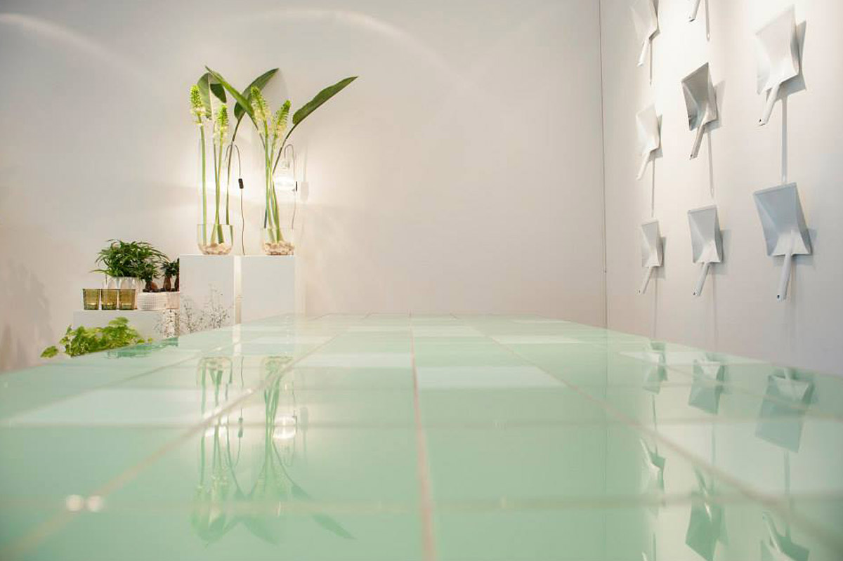 Nur wenige Gehminuten entfernt vom alten Horeis Florist Concept Store wurde im Sommer 2013 der zweite Shop eröffnet. Dieser hob sich komplett ab vom bisherigen Design. Der Laden strahlte in einem frischen Weiß, der Sichtbeton-Boden ließ alles hell und freundlich wirken. Auch hier setzte der Tresen mit seinen Fliesen in Mint einen farbigen Hingucker. Hinter dem Tresen dienten Kehrschaufeln als dekoratives Wandelement.